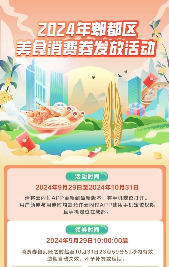 本次活动共计发放80万元消费券,近30家重点餐饮企业参加。市民可以通过云闪付APP参与领券,体验一场切实惠民、时尚新潮的美食体验盛会。以券促销,提振消费,为郫都燃起的美食消费热进一步增添热度,最大化释放消费潜能。