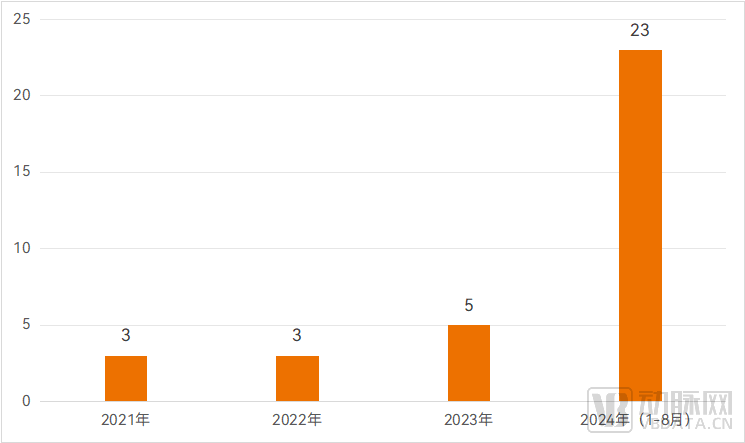 据国家药监局医疗器械原材料主文档登记信息显示,截至2024年8月22日,共有34个重组胶原蛋白原材料产品完成了登记,其中多达23个为2024年登记。