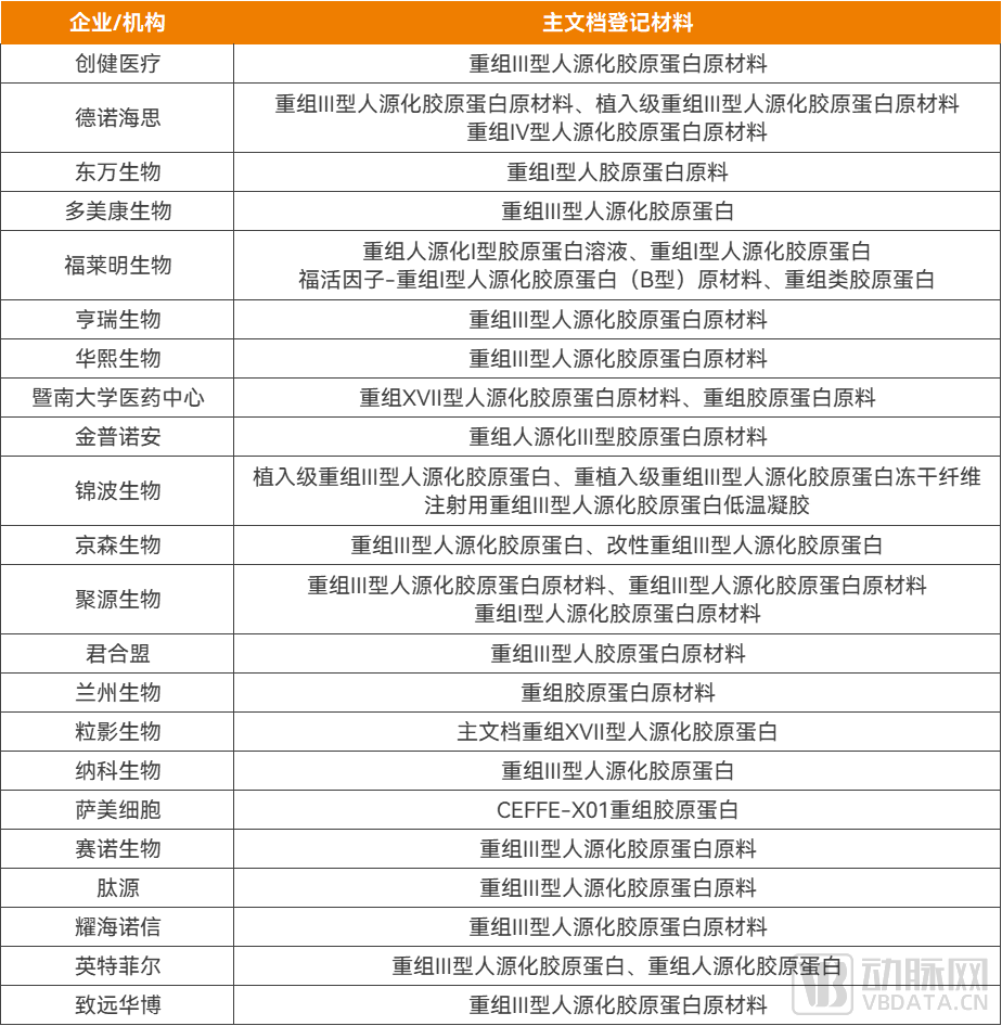 另据公开资料显示,东万生物已获得包括Ⅰ型、Ⅱ型、Ⅲ型、Ⅳ型、Ⅹ型、ⅩⅦ型等分型的重组人胶原蛋白,在医疗健康领域实现由研发到生产到营销的产业化建设,在创新医疗与消费医疗领域同步布局。