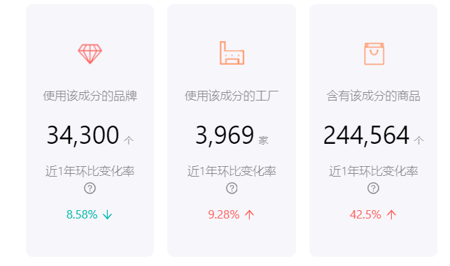 不同于“热门成分”已广泛运用于化妆品中,有些功效成分虽然应用率不高,但呈现出逐年递增态势,正以“黑马”之姿入局化妆品赛道。