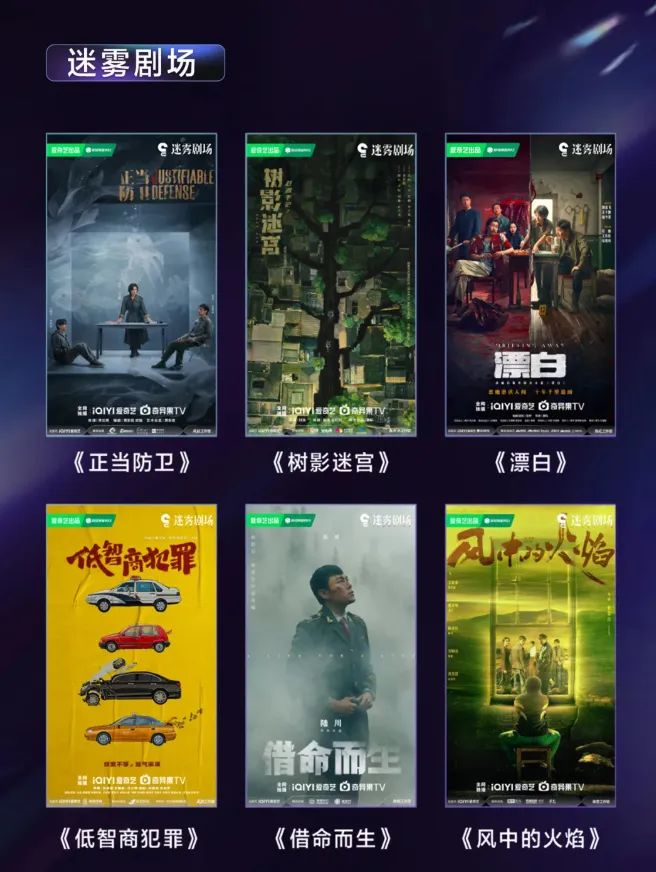 爱奇艺方面,“迷雾剧场”除去《低智商犯罪》与正在播出的国内首部灾难悬疑剧《二十一天》,还储备了与《第二十条》有着异曲同工之“味”的《正当防卫》,根据天才捕手计划《寻凶手记》系列作品改编的《树影迷宫》,改编自陈枰同名小说的悬疑涉案剧《漂白》,由陆川执导、秦昊主演的悬疑警匪剧《借命而生》,以及带有典型地域风情的硬核罪案剧《风中的火焰》。