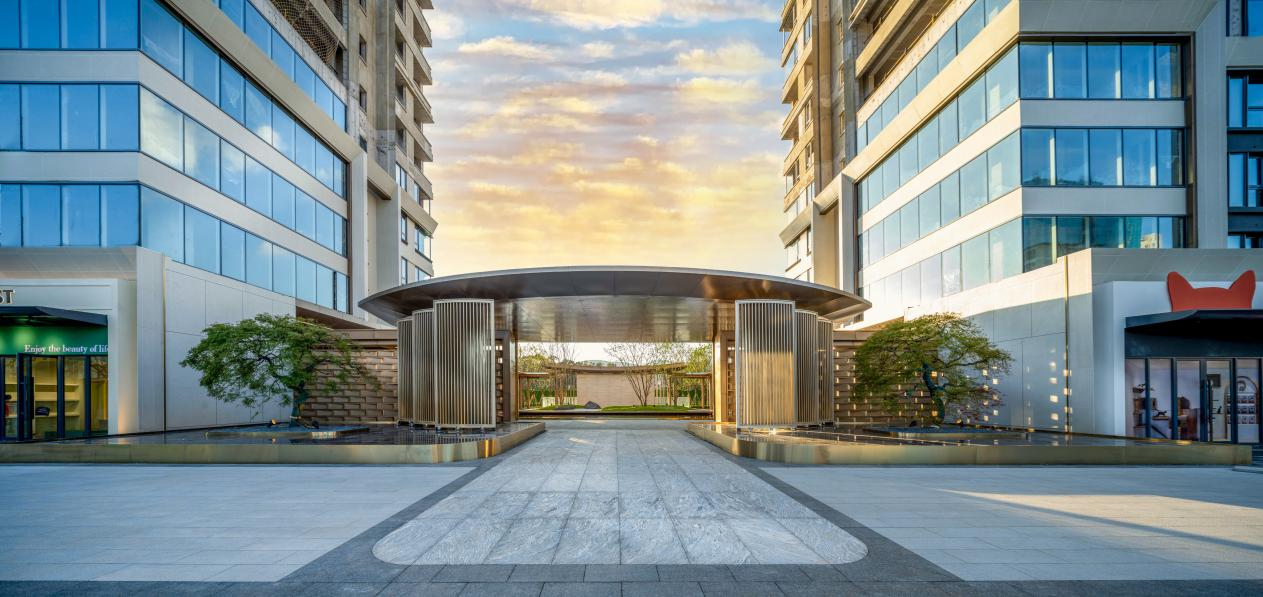 再来看看矗立的外立面,只需一眼,就足够惊艳。宋式飞檐设计,局部金属线条勾勒的形体,建筑更具鲜明的性格,现代居住感十足。