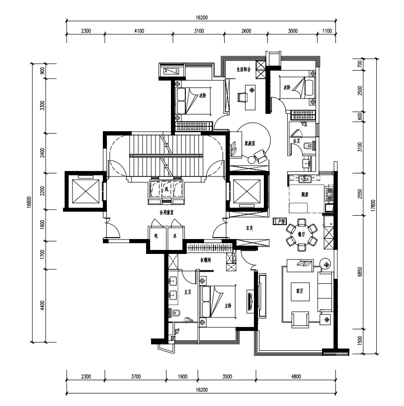 升级后的158㎡户型格局,也弥补了这个面积段内四房产品的稀缺,给到更多的购房选择。