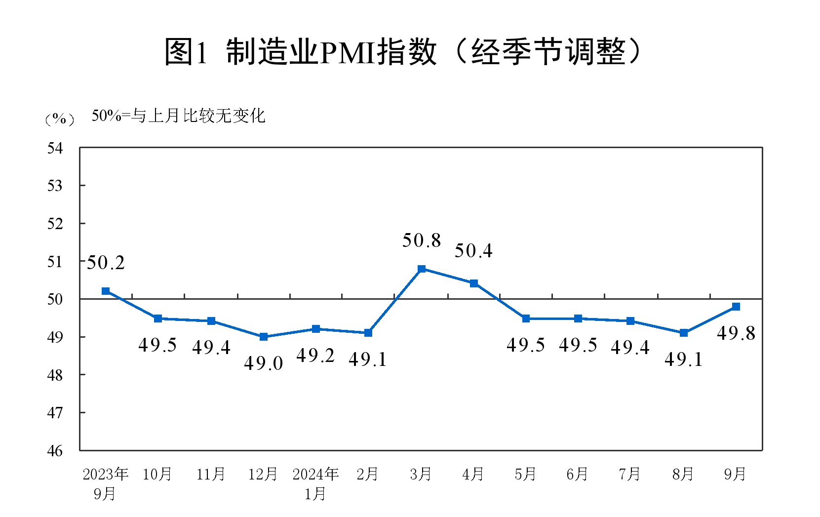 9月30日,国家统计局发布数据,9月份,制造业采购经理指数(PMI)为49.8%,比上月上升0.7个百分点,制造业景气度回升。