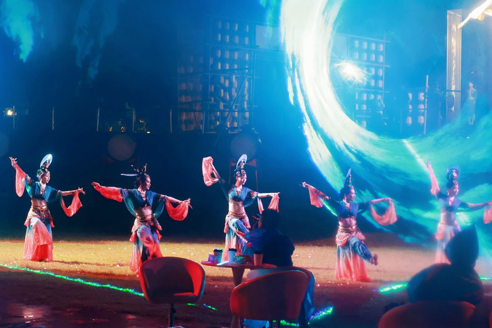 鄞州精准把握鄞风雅宋的文化精髓,深入挖潜创新,已成功打造了具有独特魅力的宋韵文化品牌,如“王安石”、“王应麟”和“宋韵钱湖”等。“湖光秋月两相和”,启幕活动中,一场沉浸剧,明月水云间,人间烟火色,以“千年一梦”“月宫寻梦”“追忆逐梦”“江山华梦”“沙洲画梦”“明州绮梦”“晨钟醒梦”等7个篇章的梦幻之旅,让现场来宾重温了宋代文人的闲雅生活,并通过古今对话,跨越时空地感受到了士大夫的家国情怀与儒家宋韵文化的深厚底蕴。敦煌飞天舞与海丝新语舞蹈,更是将丝绸之路的文化交流之美与鄞州作为宋韵海上丝绸之路起点的重要地位展现得淋漓尽致。