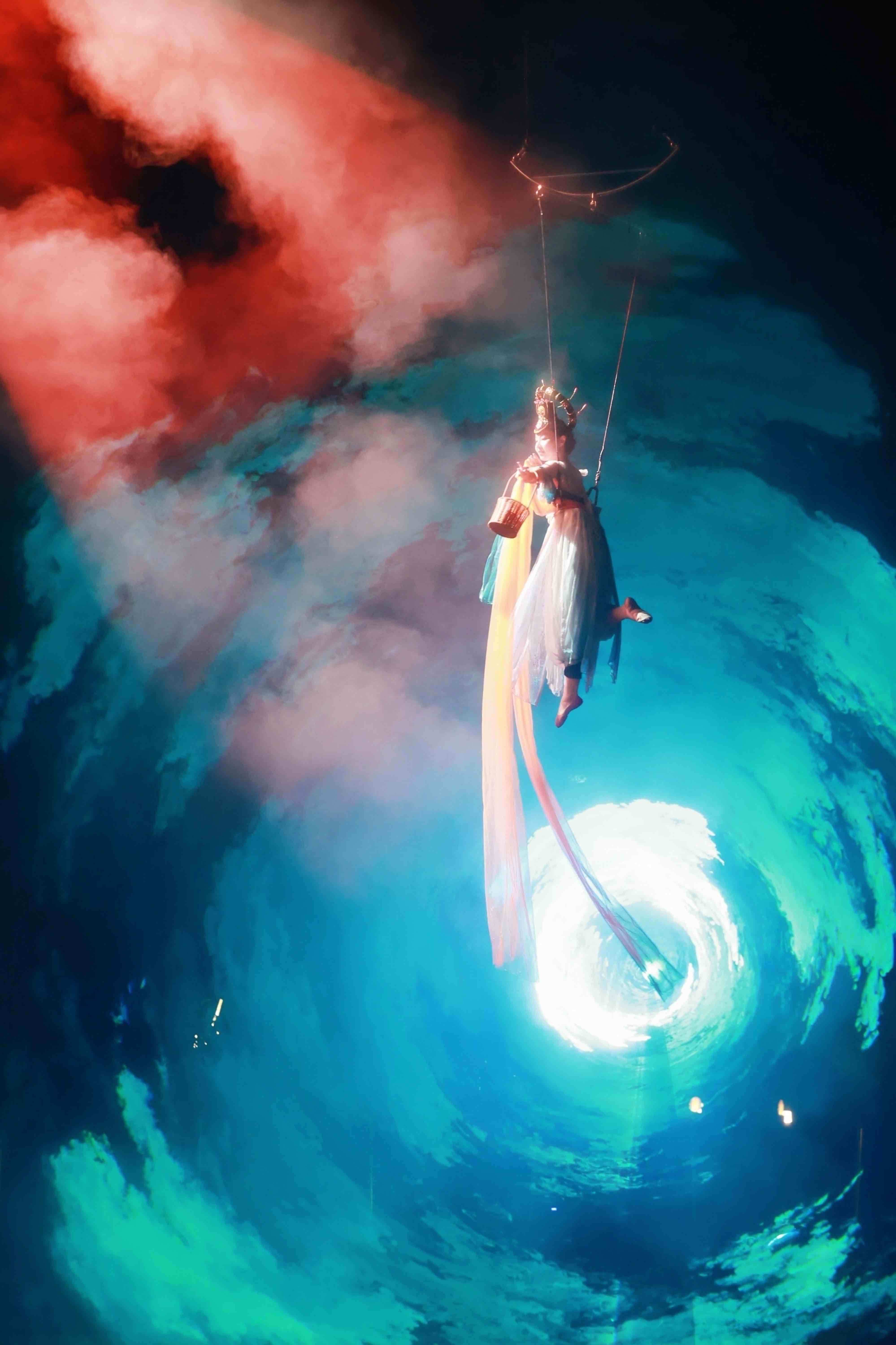 画风转到了丝绸之路,西域古道,驼铃声声;古老明州,千帆竞渡,万商云集;陆上丝绸之路与海上丝绸之路交相辉映,王应麟、史浩与年轻人对话……直到西施范蠡继续舞蹈,晨光渐亮,钱湖梦醒。