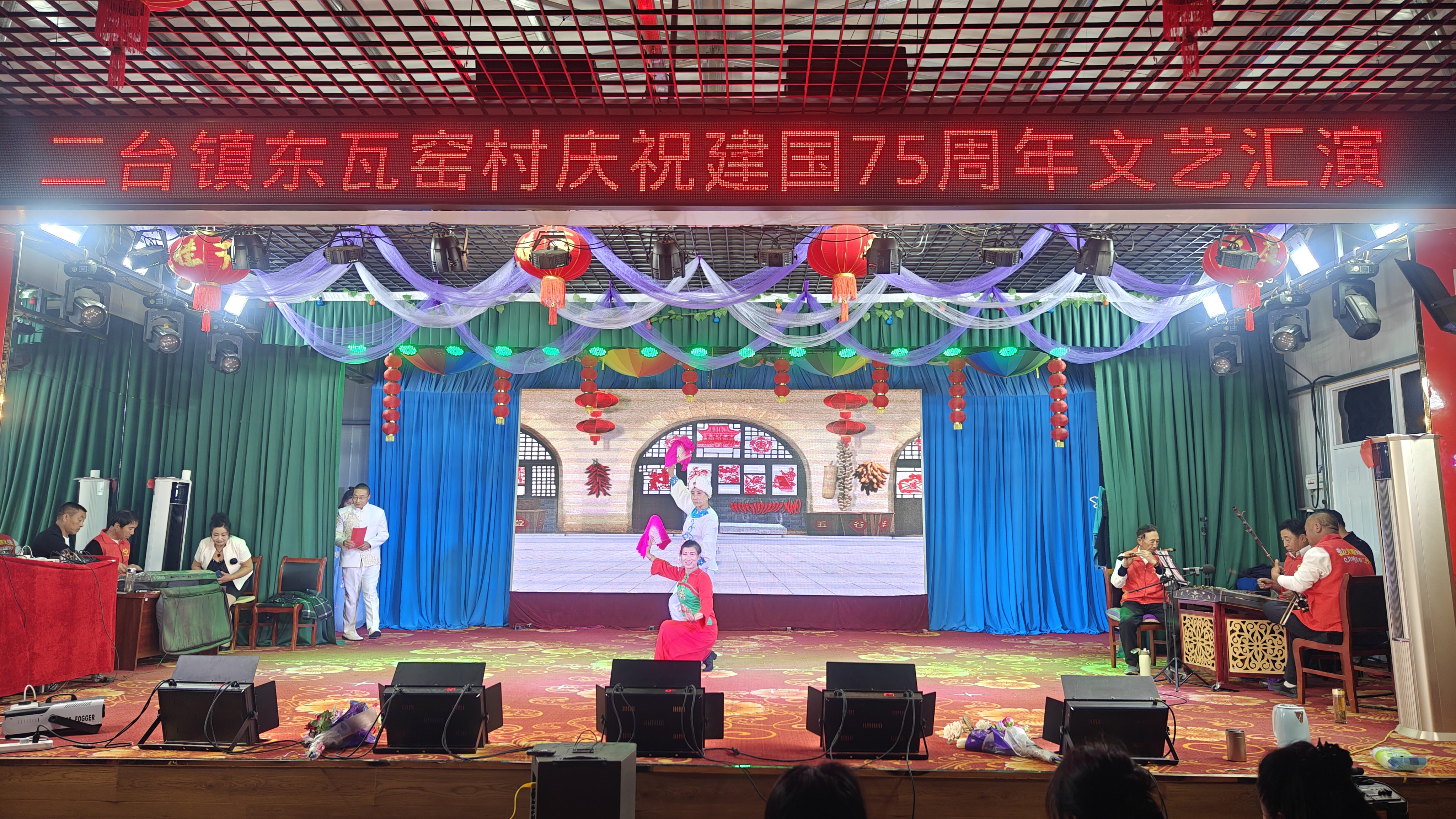 张北县二台镇东瓦窑村庆祝建国75周年文艺汇演,艺汇演大厅内歌舞、快板、小品、二人台一场接着一场,掌声不断“百姓们直呼过瘾”。