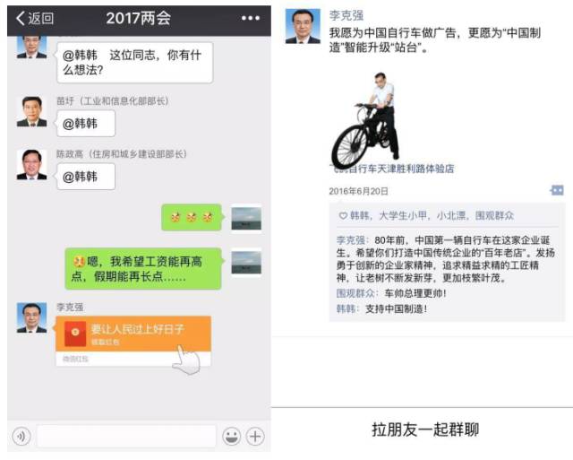 ▲《人民日报》的H5产品《两会喊你加入群聊》