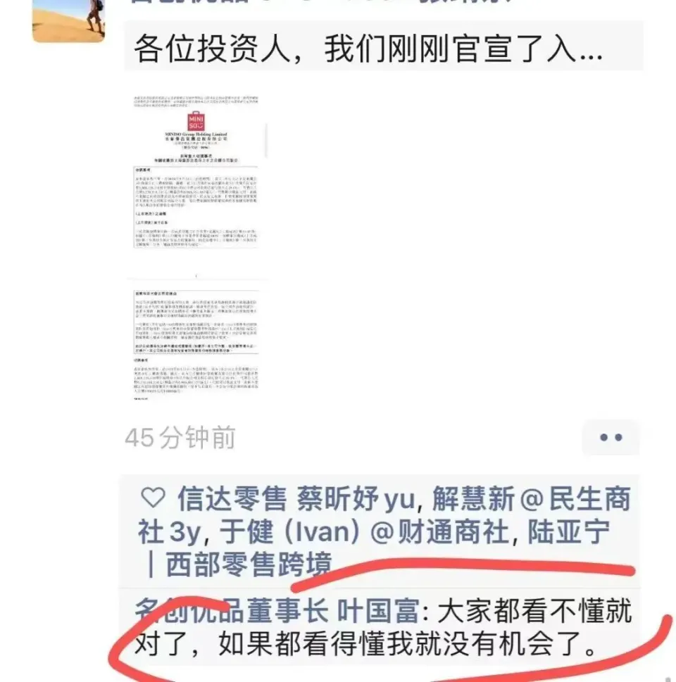 “大家看不懂就对了,如果都看得懂我就没有机会了。”披露交易公告后,网传叶国富在微信朋友圈写道。