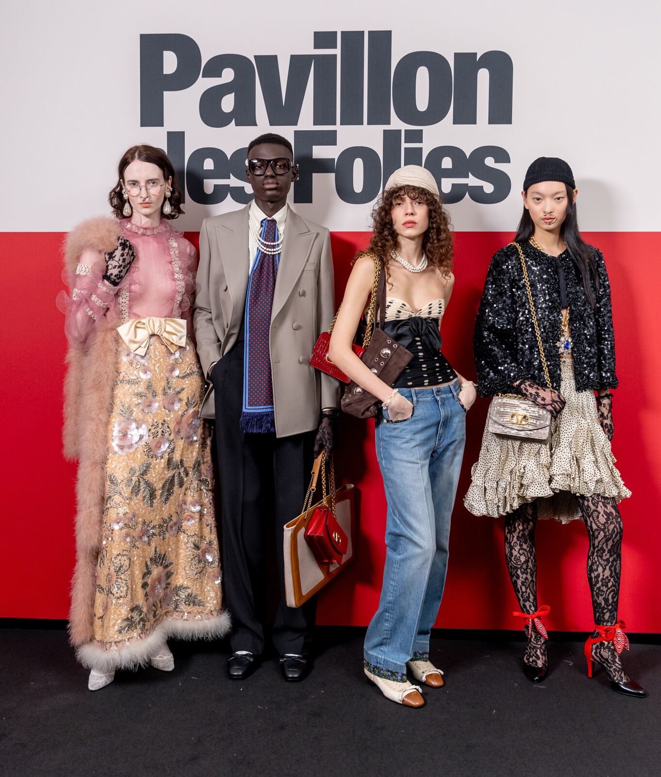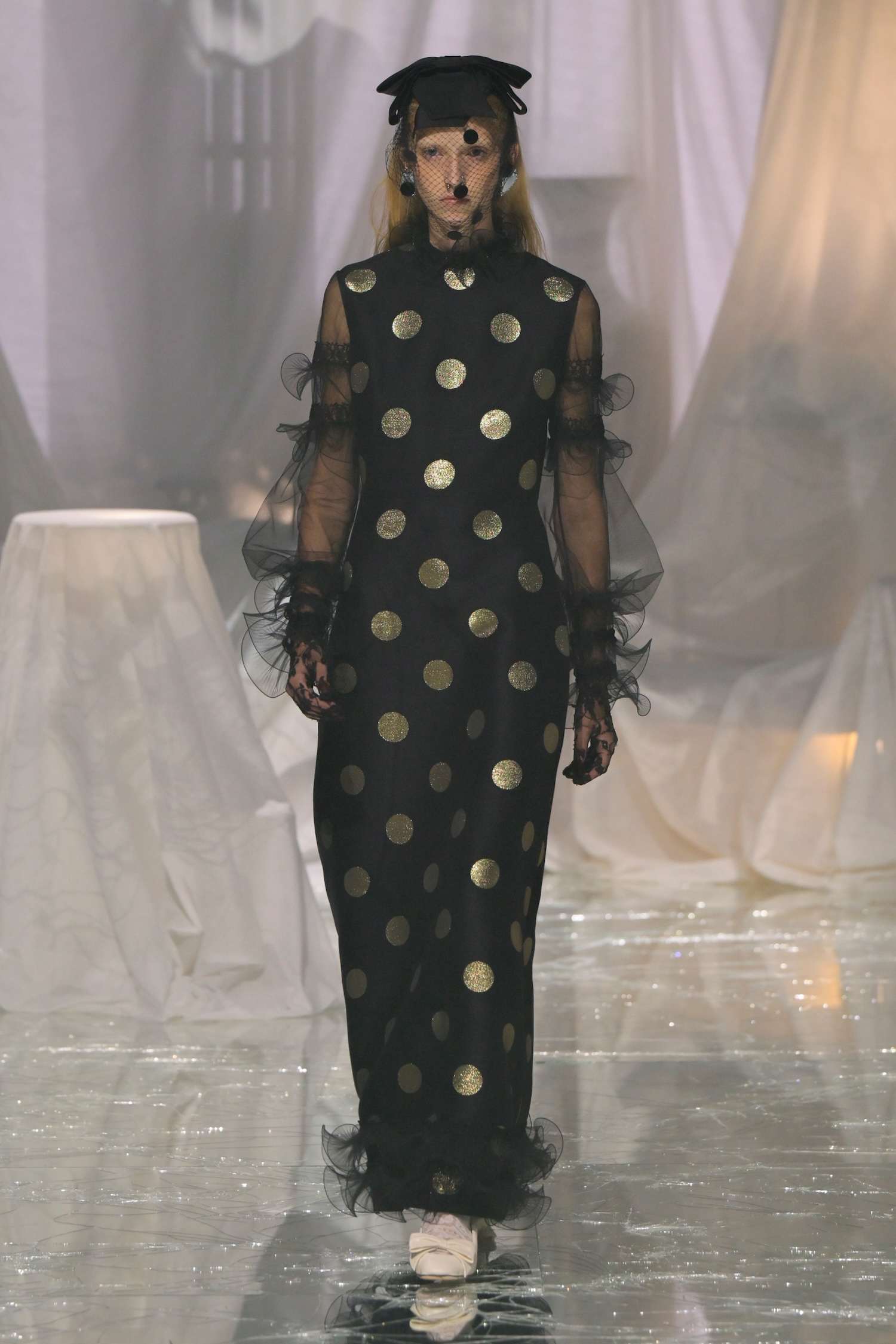 还有其它的相似点。比如一个系列中有将近百个造型,以及从Harry Styles、Jared Leto到Florence Welch这些过去在Gucci广告中出现的面孔,如今又坐在了Valentino秀场的前排。他们都是极繁主义的拥趸。