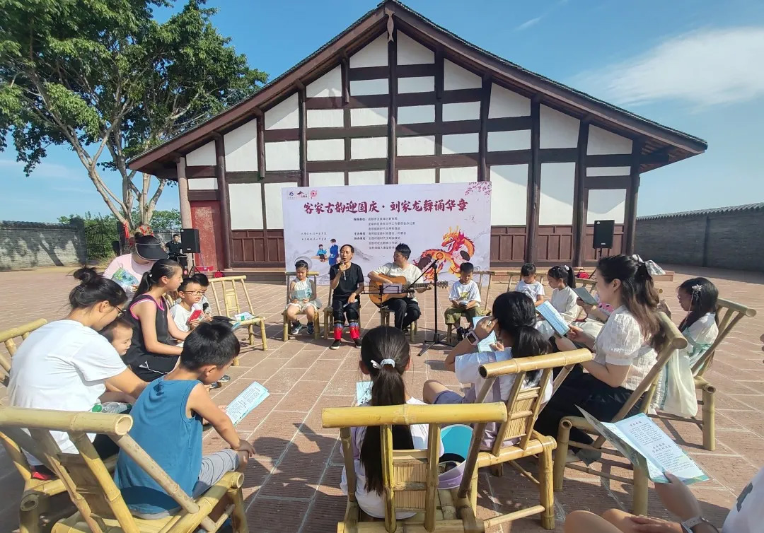 9月21日,洛带镇宝胜村联合宝胜田园大课堂在桃花古寺共同举办“客家古韵迎国庆·刘家龙舞诵华章”为主题的诵读活动。为了增强活动的互动性和趣味性,在诵读环节之后组织亲子家庭体验省级非物质文化遗产“刘家龙”。活动现场“刘家龙”传承人刘大盆老师为大家讲解了刘家龙的由来,以及舞龙的技巧等。随后,以中华人民共和国成立75周年为契机,共庆祖国母亲生日快乐,在刘老师的带领下,一条75米长的巨龙在人群中穿梭、游弋,伴随着慷慨激昂的音乐声,祥龙腾空而起。活动的最后,在场亲子家庭一同唱响《歌唱祖国》,祝福祖国繁荣富强,人民幸福安康。