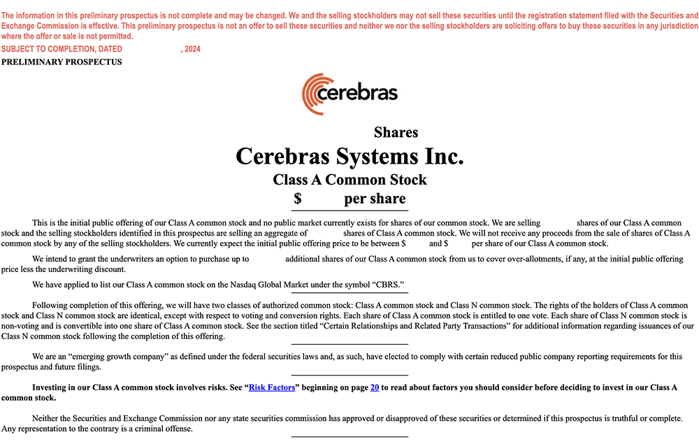 芯东西10月1日报道,AI芯片创企Cerebras Systems已提交IPO招股书,计划在纳斯达克以股票代码“CBRS”进行交易。