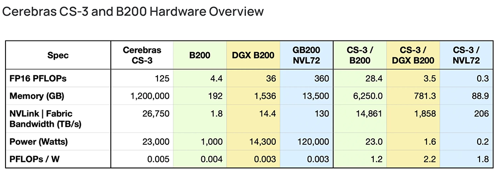 ▲Cerebras今年4月发文比较Cerebras CS-3与英伟达B200