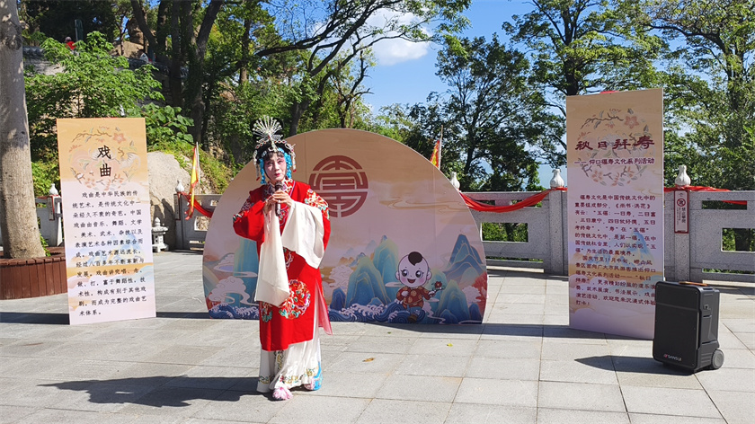 为打造仰口“福寿”文化品牌,仰口游览区还举办了仰口福寿文化系列活动-秋日拜寿,现场推出书法互动展示、非遗武术展演、沉浸式戏曲等内容,并联合区文化馆文艺小分队开展民乐演奏,丰富游客文化体验,传承弘扬崂山优秀传统文化。