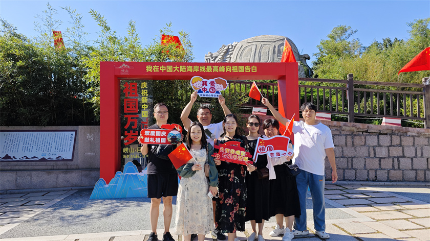 此外,在崂山风景区巨峰游览区还设置了“中国大陆海岸线最高峰”打卡墙,游客在此拍照打卡,留下崂山国庆记忆;华严游览区开展了“华严祈福”活动,为入园游客提供祈愿牌、祈福条等纪念品,邀请游客书写庆祝祖国繁荣昌盛的美好祝愿;九水游览区则开展了“我在崂山九水向祖国告白”唱国歌、手写祝福活动,将大家最真挚的祝福送给祖国。