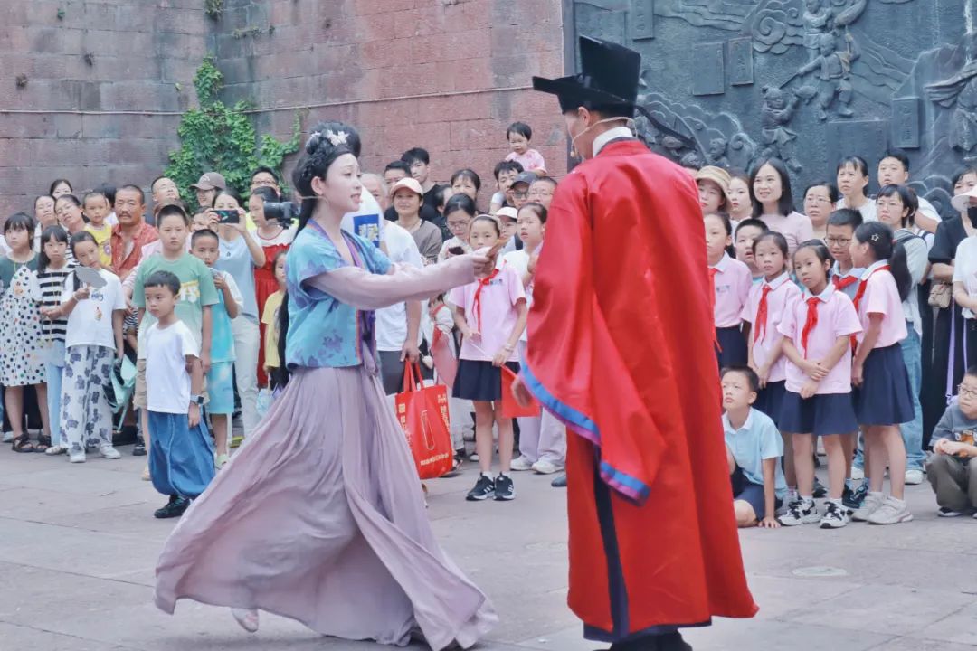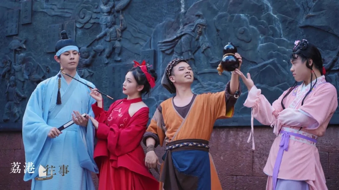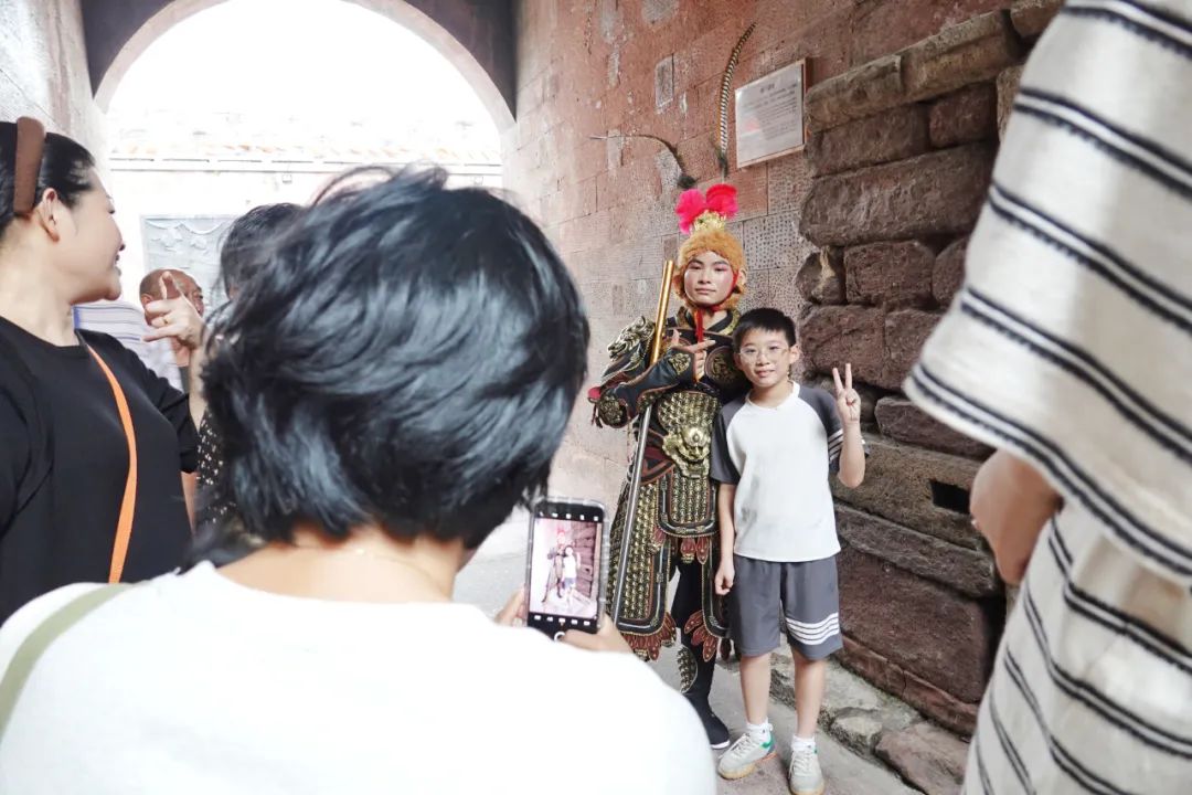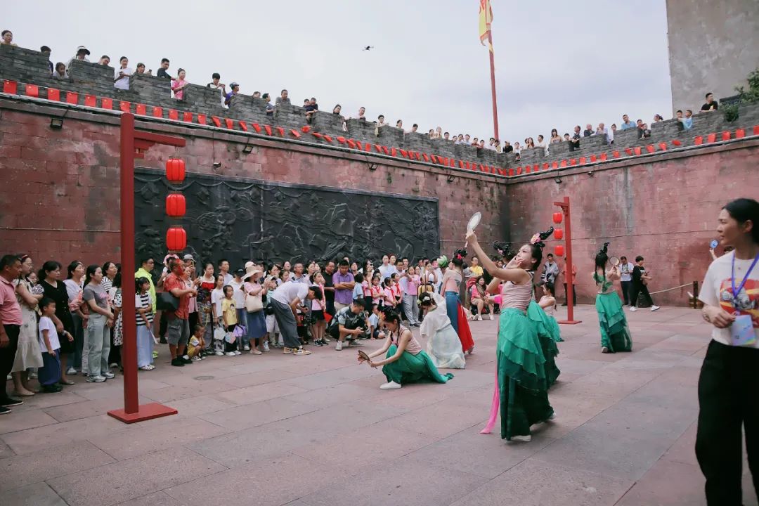 下午两点,全街区沉浸式演艺《荔港往事》准时上演,瓮城城墙上下围满了游客,大家随着剧情的推进积极参与其中。