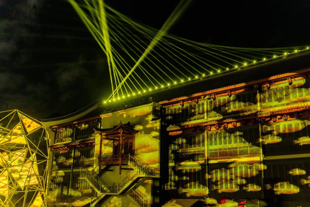 《渔光之城》滨海场景演艺秀在晚间19:30准时拉开帷幕,渔光倾泻如瀑漫延在渔港的每个角落,为山海城港,赋予了新的艺术生命,且听光影将渔光的故事娓娓道来。