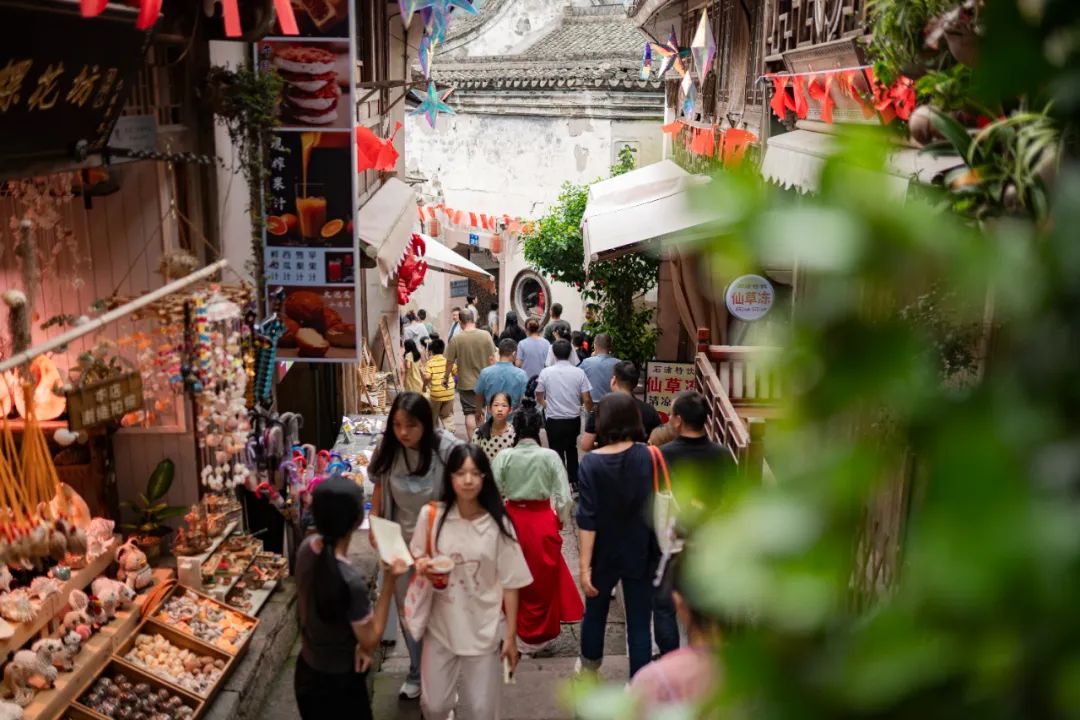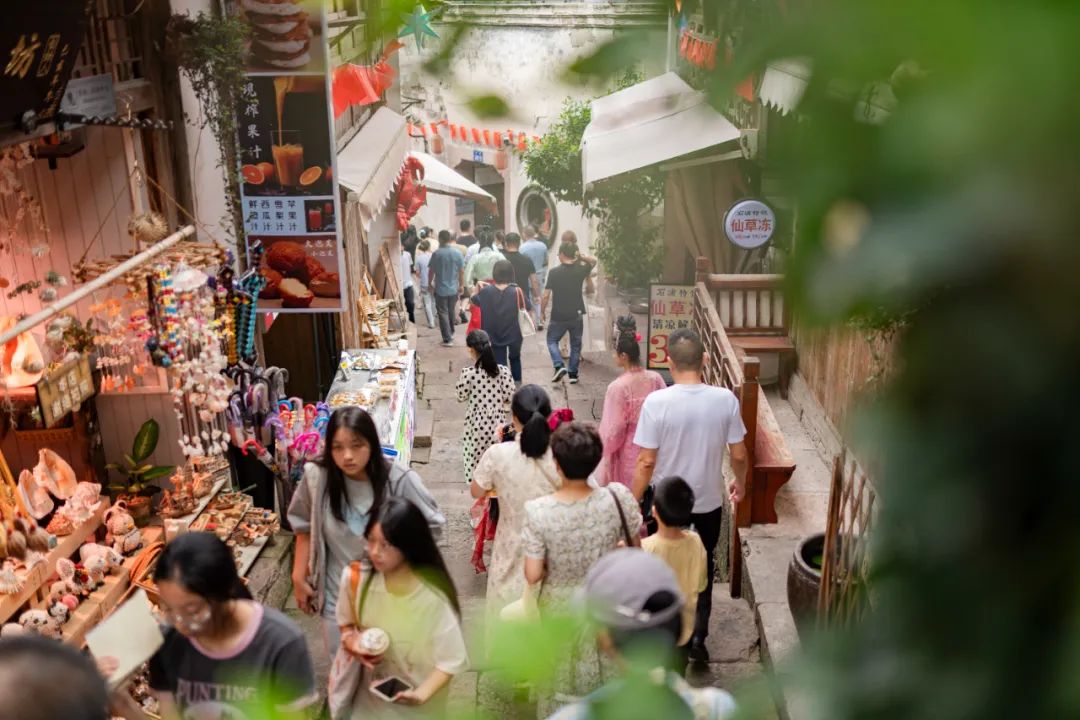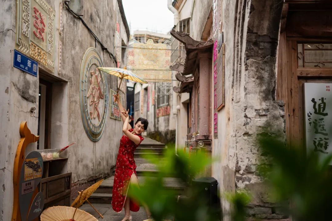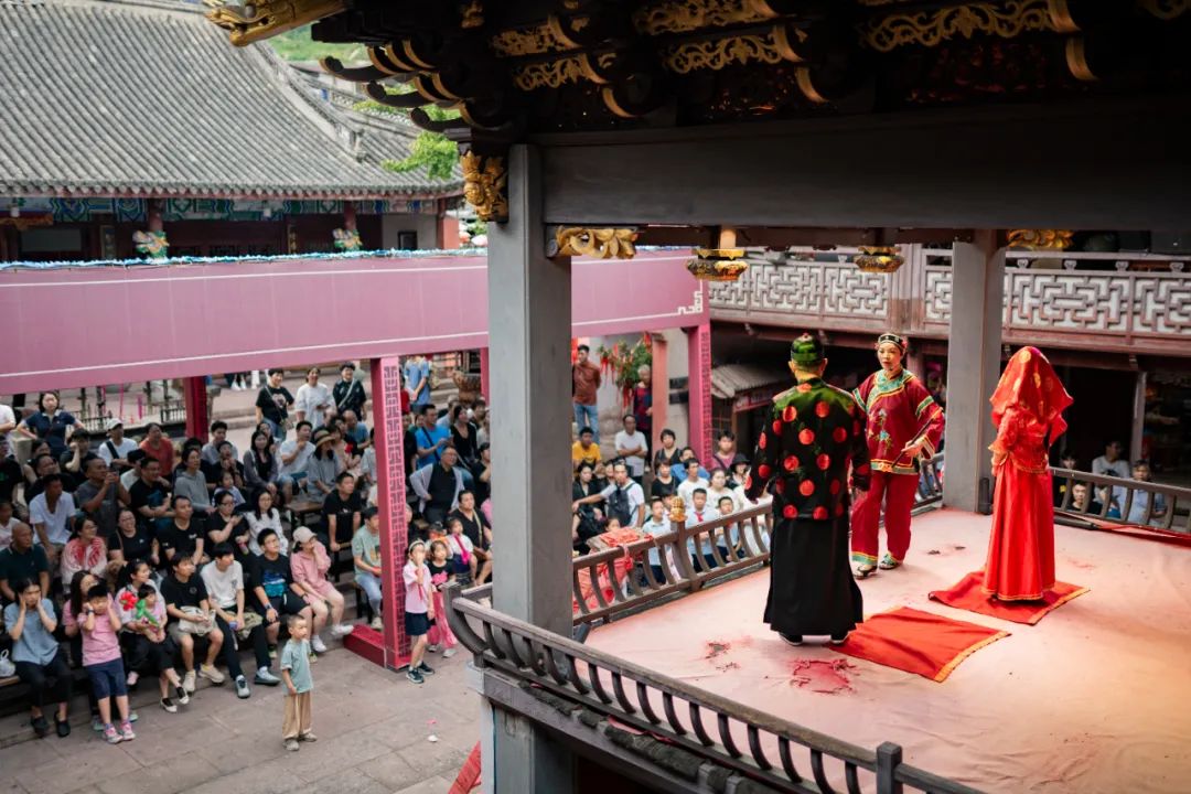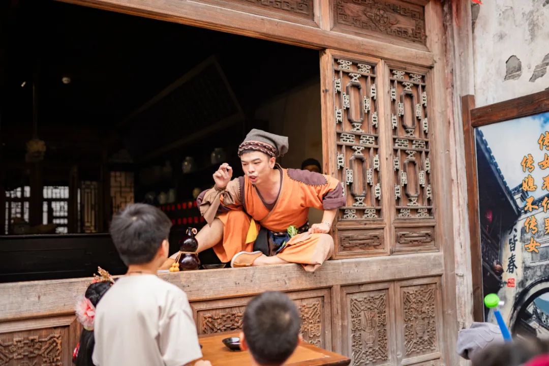 景区里缤纷的演艺活动掀起阵阵掌声,小渔民大舞台上的渔俗故事演艺街巷,古风舞蹈为游客们带来一个快乐假期。