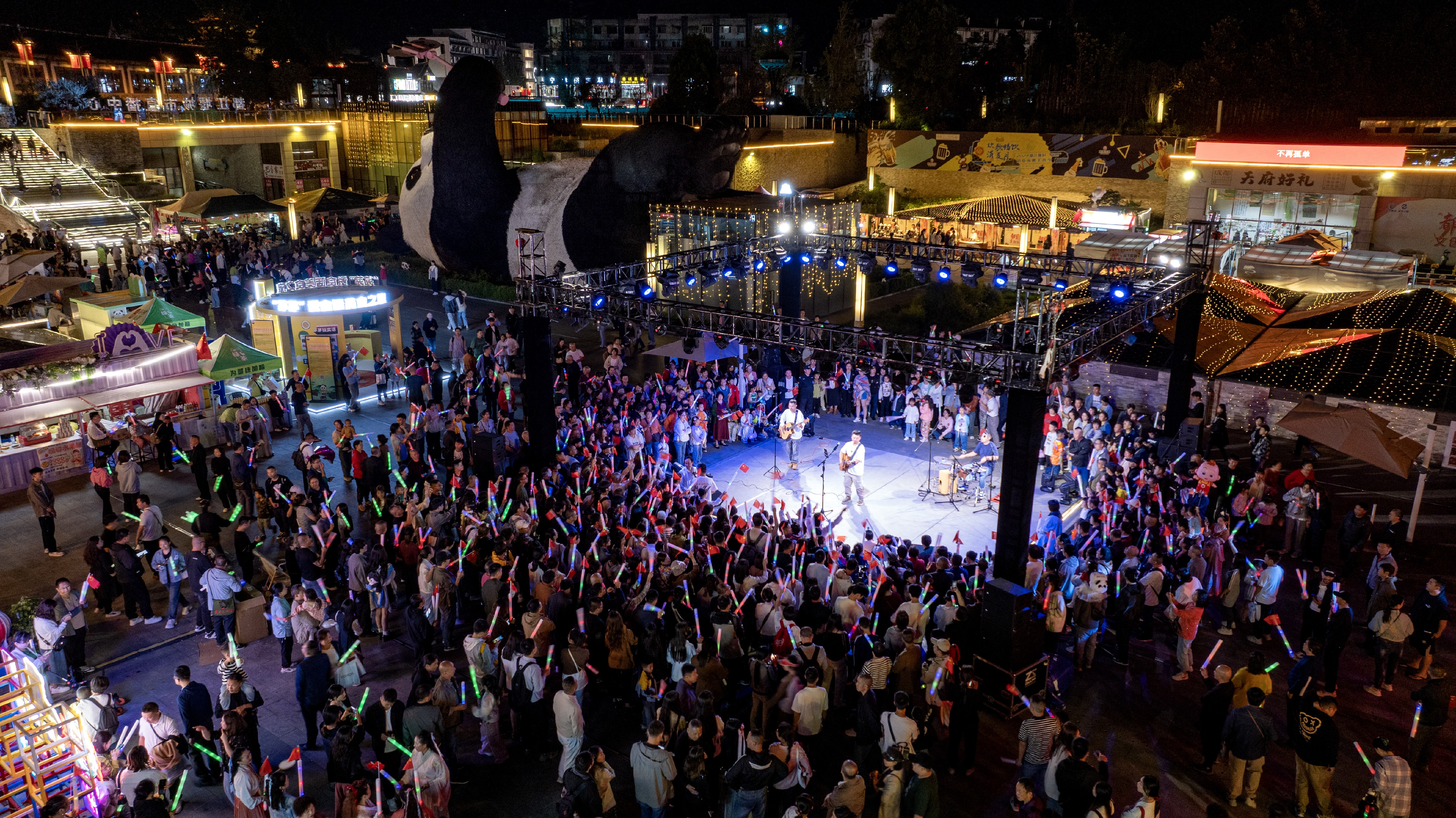 来自西安的游客王崇光和爱人昨晚就到了都江堰,品尝了都江堰美食之后,又赶上了特色文旅活动,他很是激动,“看到这么多人一起唱歌,每个人都这么欢乐,都这么松弛,非常感动。在都江堰庆祝祖国母亲的生日,特别有意义。”