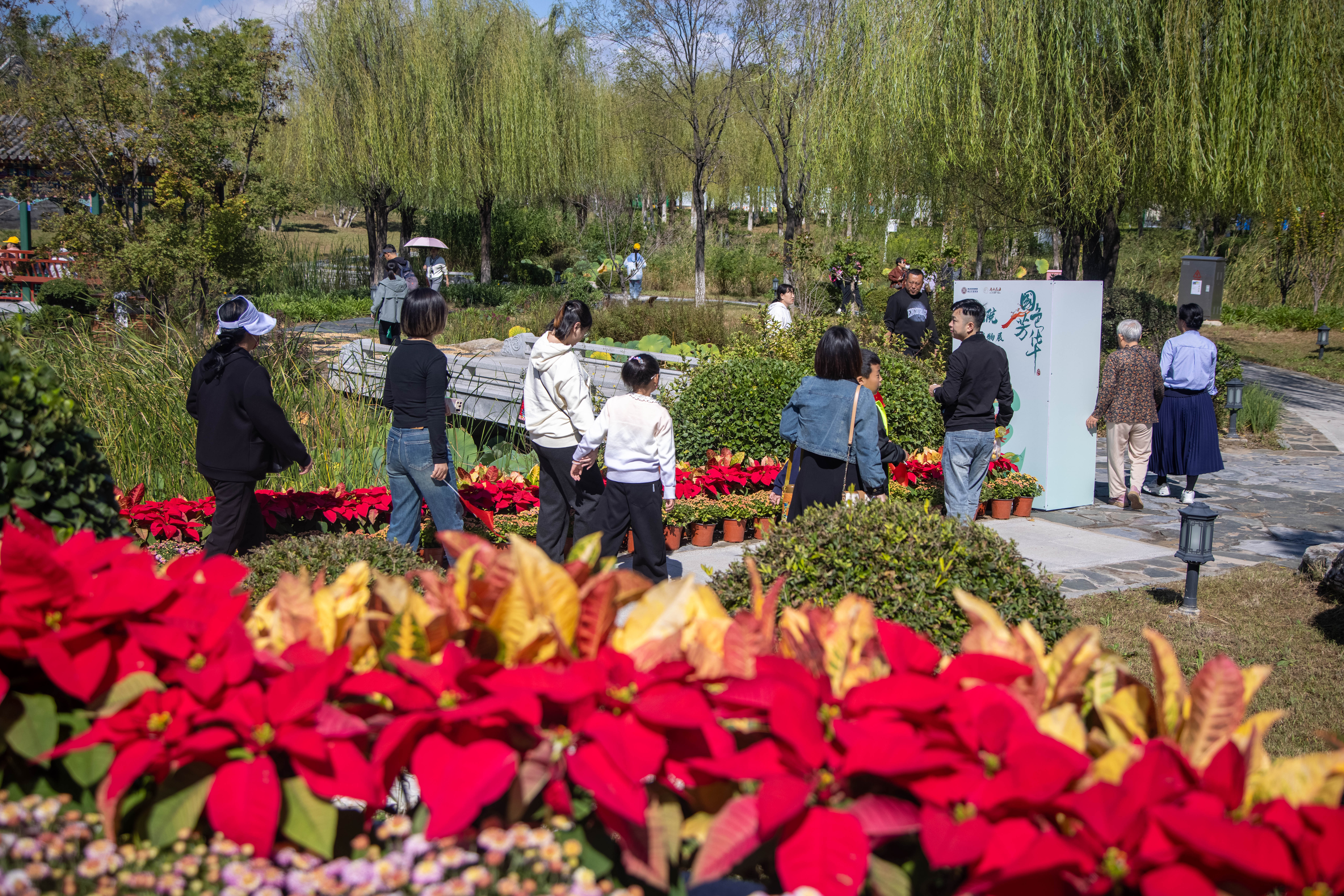 唐山花海景区国庆花展呈现菊花、空气凤梨、积水凤梨等上百种植物,让游客在花香四溢中享受缤纷秋色。走红社交媒体的褚琪桂梓则在唐山花海景区和唐山动物园表演了精彩的国潮三弦,吸引大批粉丝前来打卡互动。