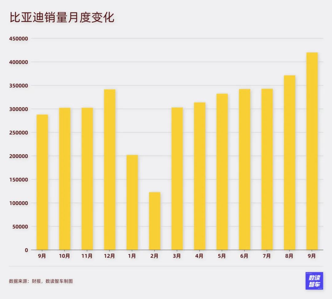 上个月,销量达到37万台后,比亚迪似乎已经到了想象的极限,然而本月,比亚迪销量达到42万台,历史上首次单月销量破40万,再次刷新历史新高。