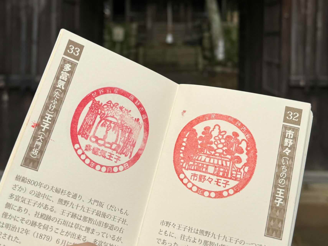 想要“全踏破”41个盖章点,第一站便是稻叶根王子。所谓“王子”可以理解为“神灵的孩子”,在这条熊野古道上有着众多的“王子”,有“九十九王子”的说法,这里是暗示数量很多,并不是一个确切的数字。实际上,这些“王子”是指大神社的附属神社,据说建立的初衷是充当路标,形成要归功于历史上曾充当向导的苦行僧。