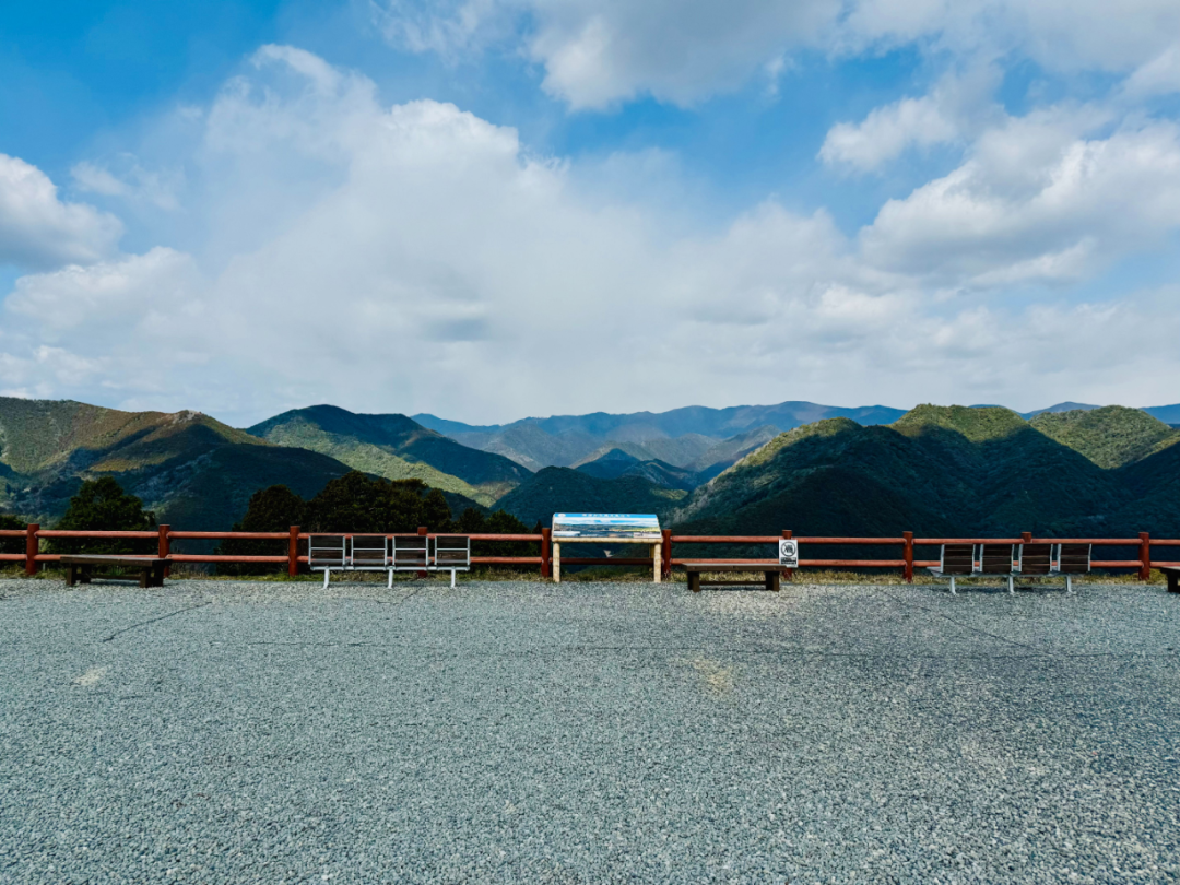 穿过能越桥,盖完第二个章,回到主路,还要完成当天第三个点的打卡。其名称为“潮见峠越”。这是一个小小的攀升,算是对日后几天的一次试炼,虽然不高,但一来一回也足足10公里。爬到顶,有一个极为简陋的休息所,如果实在找不到地方,这里应该可以过夜,但我去的时候四周无人。