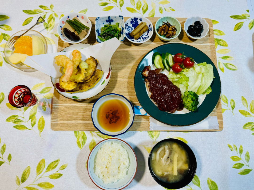 当晚入住“继樱王子”附近的民宿。是由一对日本老夫妻经营,提供两餐,也就是标准的“一泊二食”。晚饭是天妇罗和猪排,还有五碟小菜和水果,这是我徒步期间吃过最好的一餐。当天同住的有两个本地徒步者和一个来自美国的印度裔小姐姐。餐桌上的交流主要以日文为主,而和我聊天时大家会用英语。语言在这一刻并不是障碍,交流的氛围十分热烈,老板还给每人倒了一杯清酒。