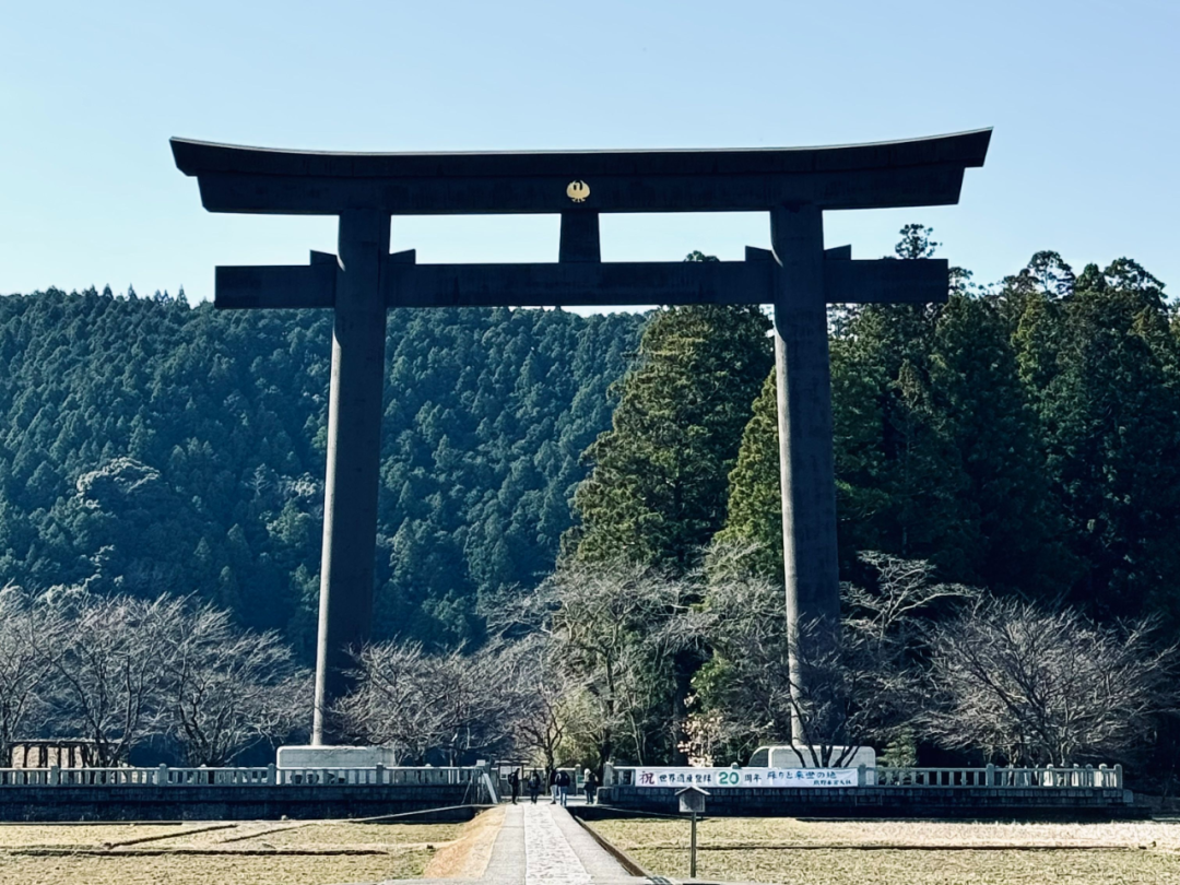 不过,让这座神社出名的另一个标志性建筑就是“大鸟居”,即大斋原。这座高达33.9米的钢筋混泥土鸟居是目前日本第一大鸟居,走近去看确实震撼。这座门被认为是是俗世与灵界的分界之处。同时这也是一处押印所。夏天的话这里会因为绿绿的农作物而更美。