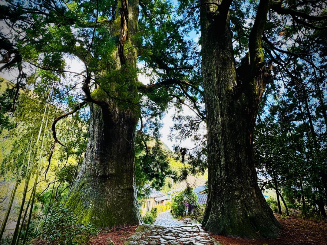 不仅如此,这里还有意义上的中边路终点“大门板”,267级台阶,长度约600米,但爬升却有200多米,幸好徒步者是从上走到下的逆行,游客们则需要辛苦向上攀爬,幸好山脚的入口处提供木杖辅助攀登。除此之外,入口有左右对称的著名的“夫妻杉”,它们的根部在小路下方缠绕着,据说高超过米、树龄超过800年。可以在附近的茶屋租平安时代的和服拍照。