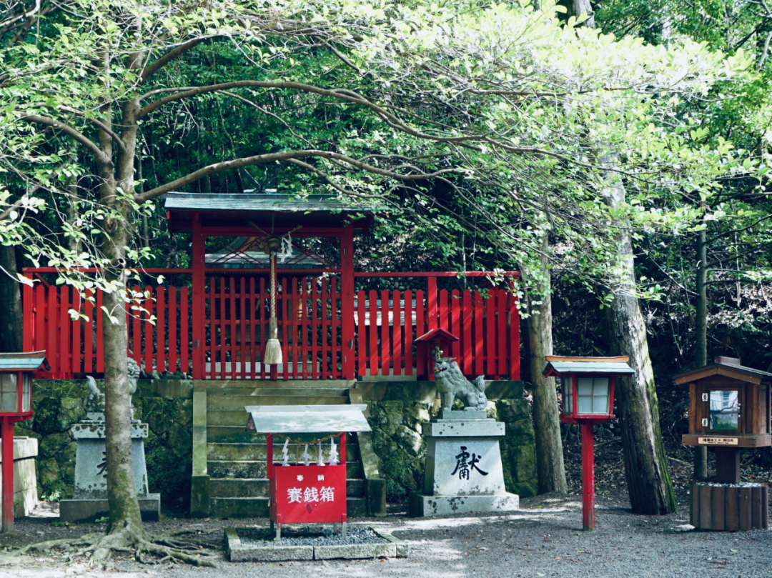 在这之后就是铺装路段了,剩下的只有三座神社。其中速玉大社被称为新宫,旧宫则对应着的是如今神仓神社的所在地,这座历史悠久的神社也被列入了世界遗产名录,其独特之处是“岩石崇拜”。要想看到著名的“琴引岩”,就要沿着原始的石阶路向上攀爬多级台阶。好在盖章的位置就在山脚下入口处。这里也是我唯一一次看到提示有毒蛇的警示牌。
