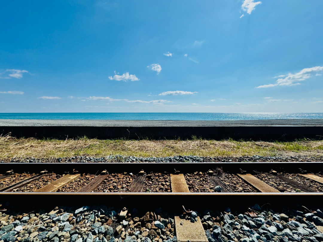 又经过一夜休整,最后一天我选择了快速通关。一早起床,从小狗子峠开始走路,走过高野坂,这是一段很美的海边风景。也有铁路在其间,非常出片。有一处展现捕鲸文化的遗址,在这里人们可以从山顶快速发现迁徙到近海的鲸鱼。不过,我这一次并没有发现。
