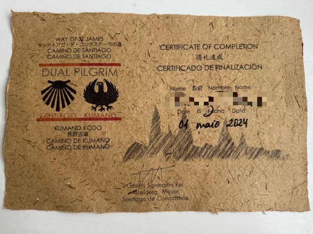 图:走完日本熊野古道和西班牙朝圣之路后可获得双朝圣认证证书