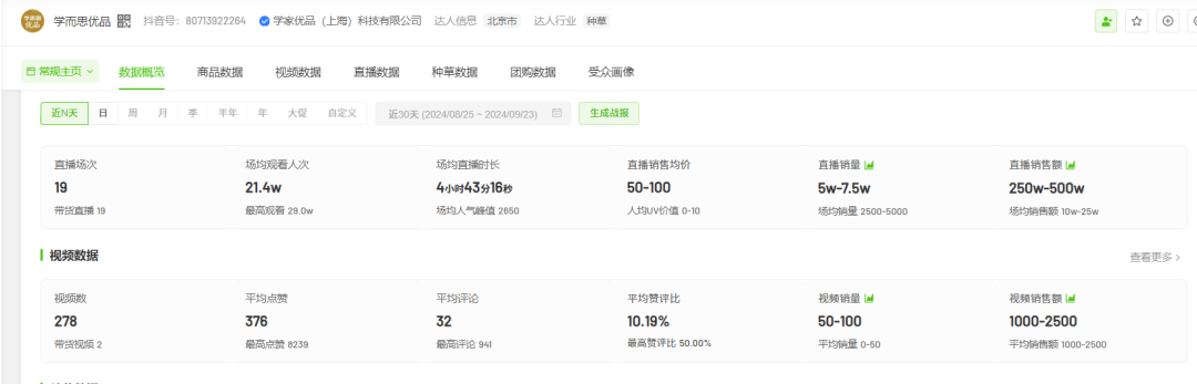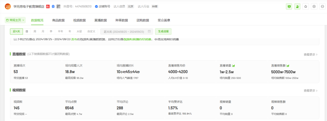 据“趣解商业”了解,学而思(好未来)在2022年开始尝试直播带货,目前直播主阵地在抖音平台,旗下有主打全品类带货的“学家优品”(后更名为“学而思优品”)、主营学习机产品的“学而思电子教育旗舰店”、主营相关网课和题库的“学而思编程官方旗舰店”“学而思剑桥英语”和主营学科绘本的“学而思图书旗舰店”等将近20个品牌账号。