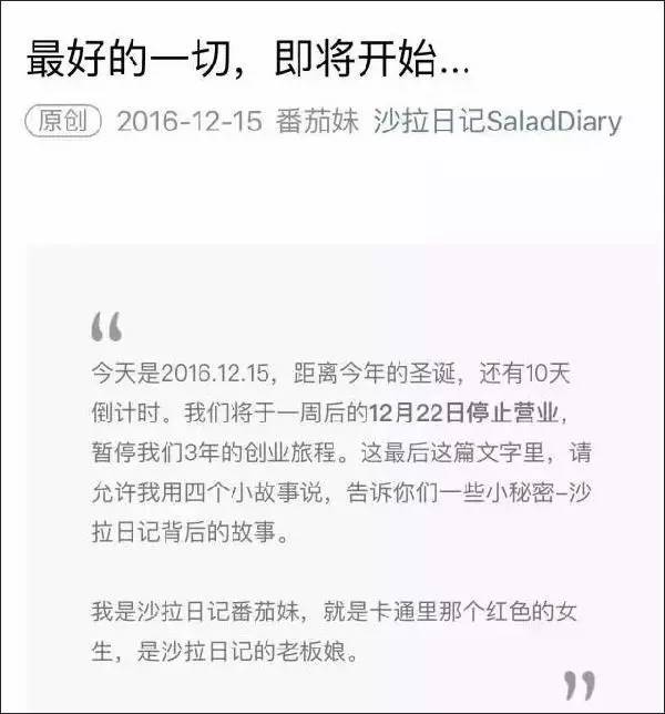 更糟糕的是,去年 4 月,极客沙拉关闭了北京的两家门店,开始尝试新的 “店中店”+ 线上配送模式;今年初,“沙拉日记”宣布倒闭,创始人留下一句“有单量,没利润”暗淡退场。他们都是沙拉领域内 “做得不错” 的沙拉品牌,但结局并不美好。