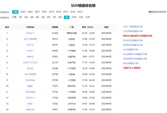 汽车销量榜也证明了这一点。老款哈弗H6 9月重新夺回SUV销冠称号,这款已经上市十年的老车型老树结新花,迎来第二春。合资车型中,丰田锋兰达月销突破两万,合资车中位列榜首。长安CS75超过了曾经的新能源销量王比亚迪宋PRO新能源,比后者足足多卖了2700台。