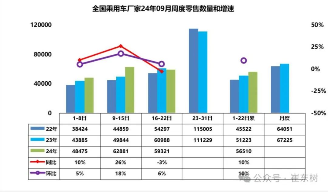 乘联会数据显示,9月1-22日市场零售124.3万辆,同比去年增长10%,车市增速达到了今年少见的两位数。