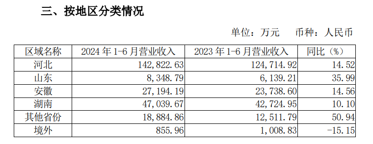 今年上半年,湖南市场为老白干贡献了4.70亿元的收入,位列所有市场中的第二位。但该地区的同比增幅仅为10.10%,仅高于境外市场营收的变动幅度。