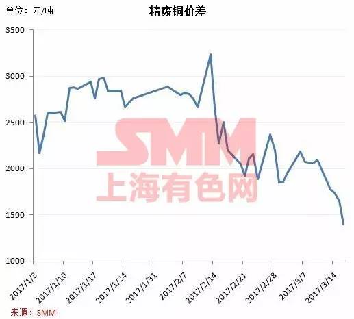但由于近期废铜采购热情高涨,导致近期精废铜价差已经迅速缩窄至1400元/吨左右,而在春节前一度在3000元/吨以上。但综合多因素,目前企业仍认为采购废铜的成本更低,故废铜市场仍较为火热。(上海有色网 沈秀娟)