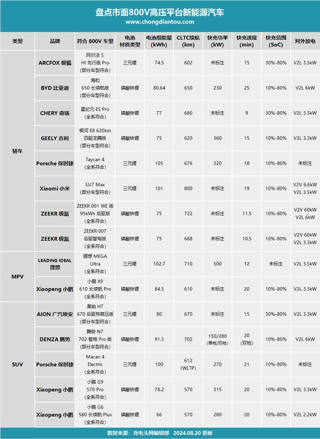 当然,基于800V架构的车型远不止这些,我们就不一一列举。