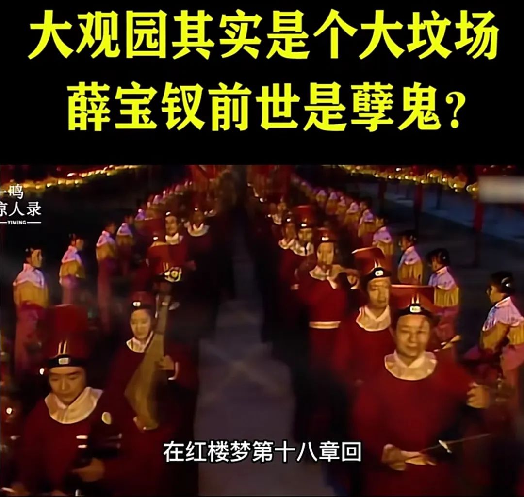 但现在的“聊斋派”就直白多了、也刺激多了,刘姥姥暗示薛宝钗是鬼、元春夜里省亲、大观园是座坟场、石头记的石头是墓碑都是主要论点。这种“细思极恐”本来就是短视频的流量密码,配上博主的解说和阴惨惨的BGM就能把群众吓得一愣一愣。怪不得贾宝玉衔玉而生,原来是死人的玉含!再配上新流行起来的中式梦核,大热天也能看出冷汗。