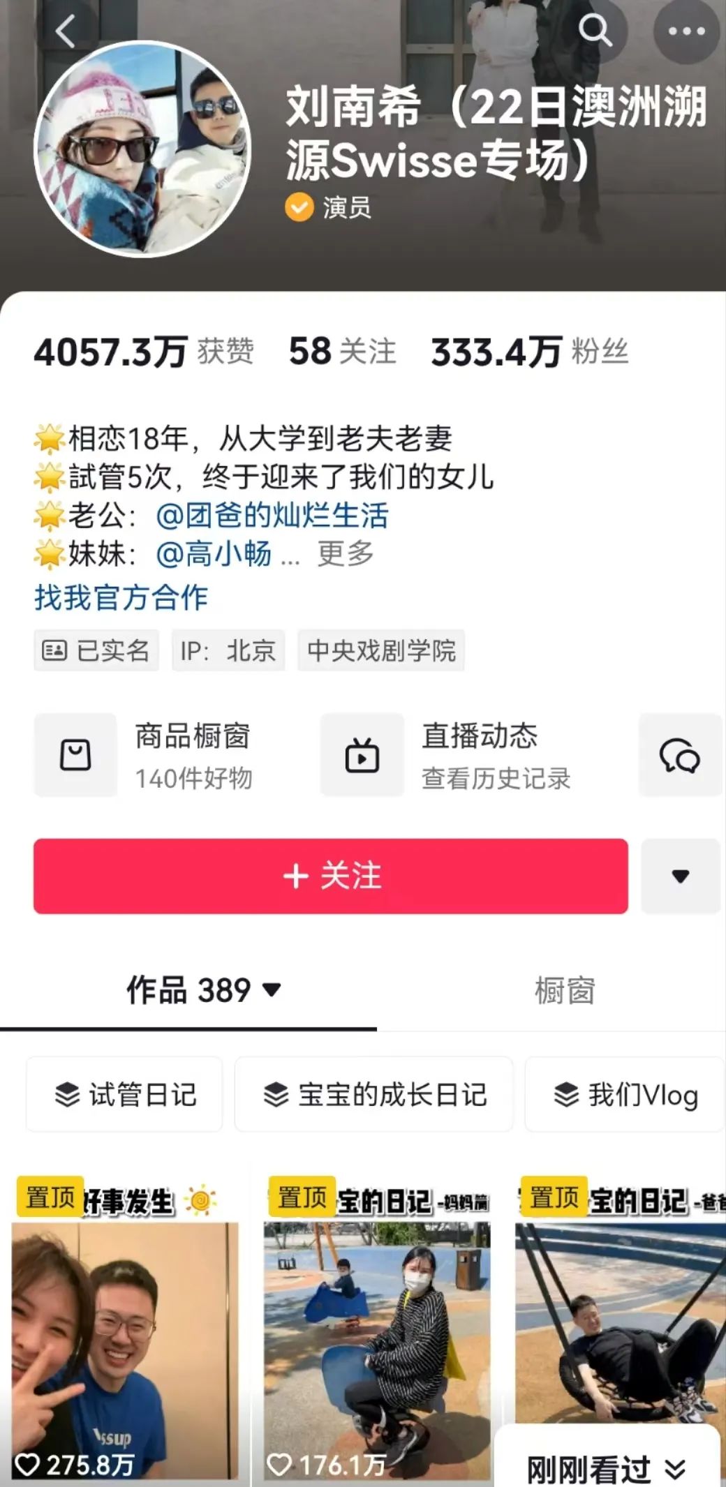 在经历了正常备孕、中医调理,甚至求神拜佛无果后,2022年,33岁的女演员刘南希选做试管婴儿,经历了5次试管失败后,她终于在2024年如愿生下一个女儿。
