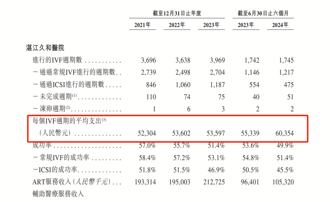 具体看,2021年-2023年及2024年上半年,患者在爱维艾夫旗下湛江久和医院接受IVF治疗的平均费用逐年上升。具体看,每个IVF周期平均支出分别为5.23万元、5.36万元、5.36万元和6.04万元。