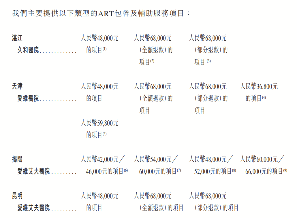 该复杂的过程被称为IVF周期,据《招股书》内容可知,IVF治疗阶段从女性患者进行促排卵开始,一般持续7至14天,随后是胚胎实验室过程,该过程可能在3至6天内变动,直至完成胚胎移植。爱维艾夫所提供的每个IVF周期的平均费用在5-7万之间。