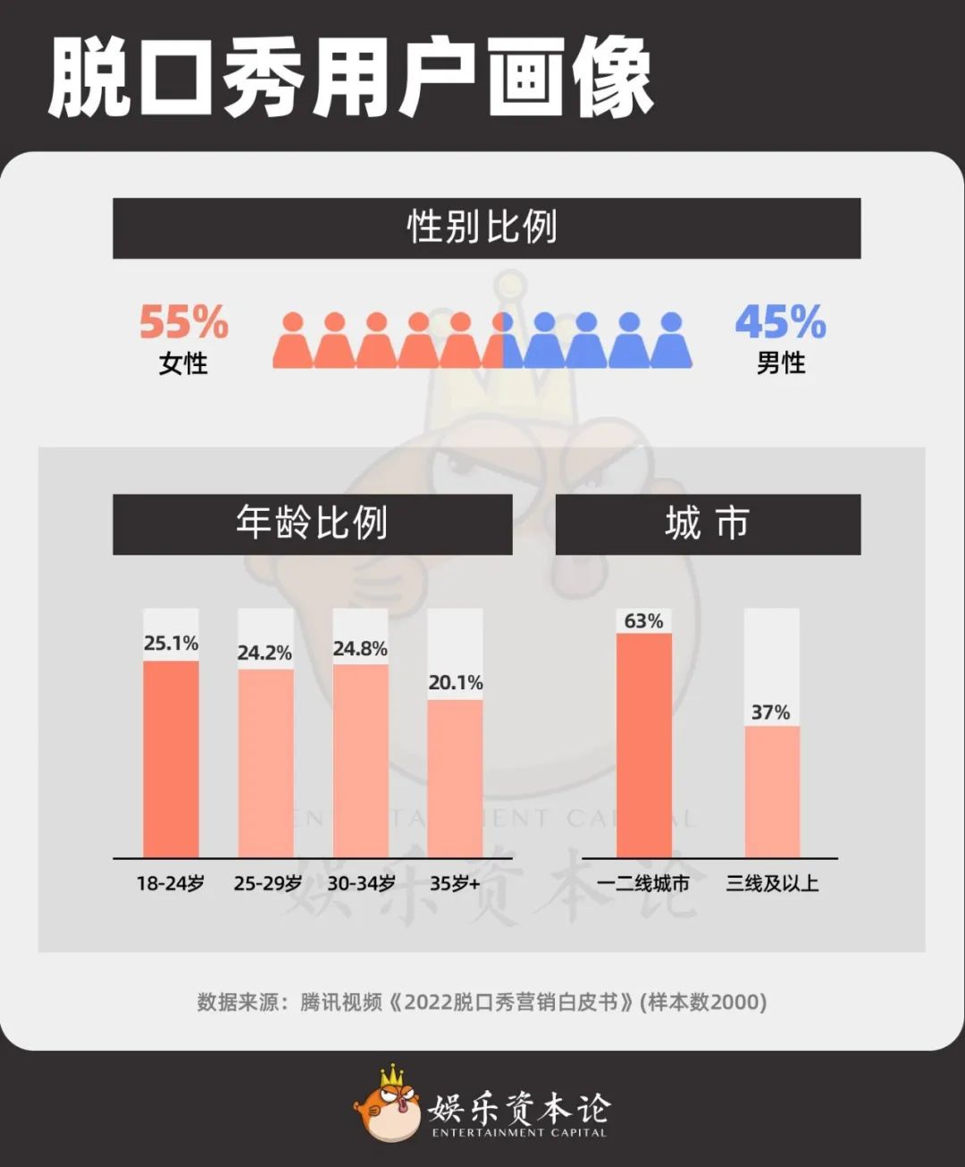 这背后的原因之一在于,脱口秀的受众人群是综艺受众中的细分领域。一二线城市、35岁以下、女性,成为脱口秀的主要人群特质。