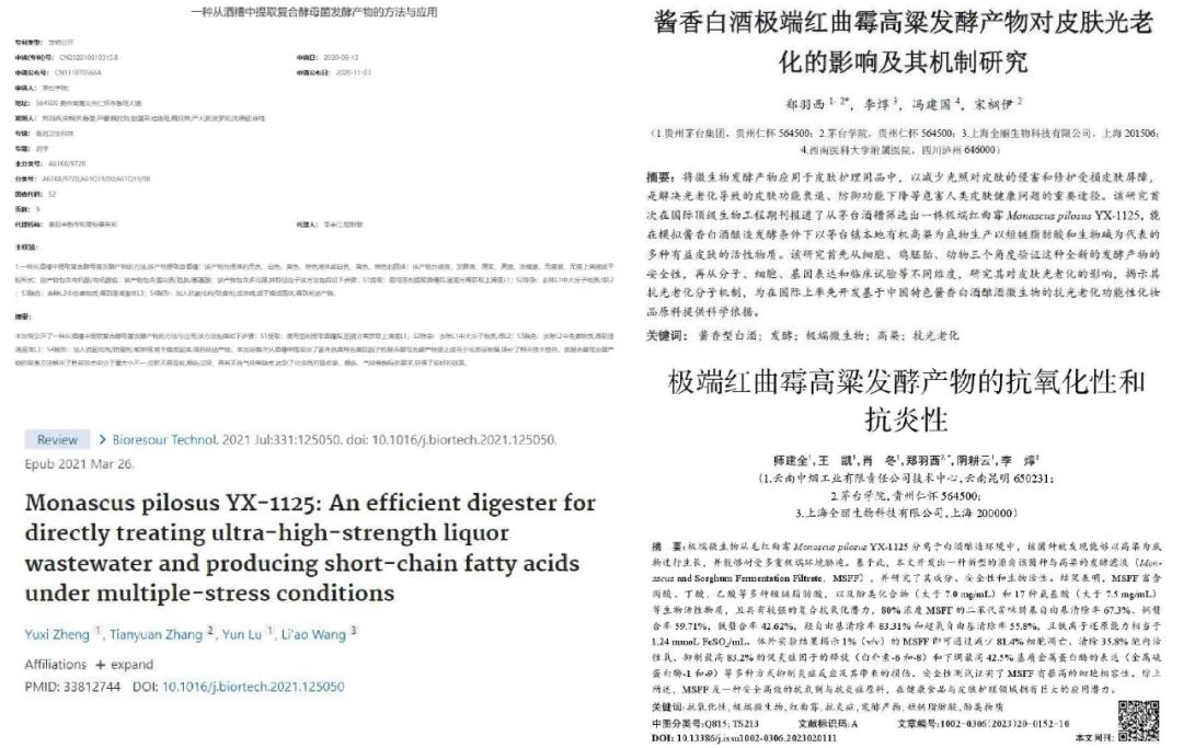 2021年,茅台学院与清华大学、重庆大学合作共同发现和研究了极端微生物YX-1125,相关论文刊登在中科院一区TOP期刊《Bioresource Technology》上。