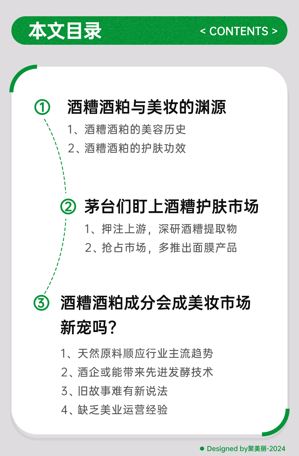带着对这些问题的追问与思考,聚美丽从酒业跨界做化妆品这一切入点出发,梳理了国内外对酒糟酒粕类成分的研究与应用现状,分析了利用酒糟酒粕类成分做化妆品所具有的优势和面临的挑战。