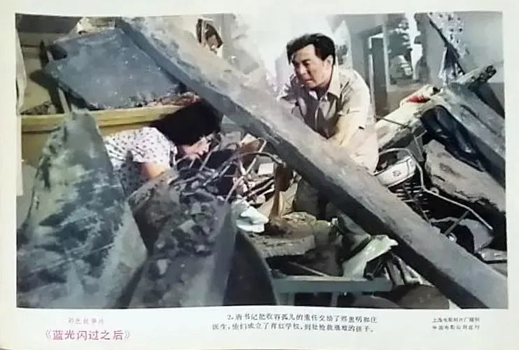 1979年的《蓝光闪过之后》乃是这一时期的里程碑作品。该片从唐山大地震出发,通过模型搭景技术,再现了这一大型灾难发生的始末。尽管对灾前与地震都有所着墨,但影片还是将重心放在灾后的集体救援与重建上面,关注政府的救助与秩序的重建。总体而言,电影还是与当时的主旋律影片相重叠,承载着宣扬主流价值的功能。