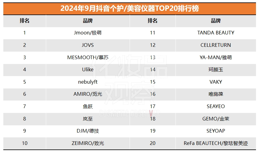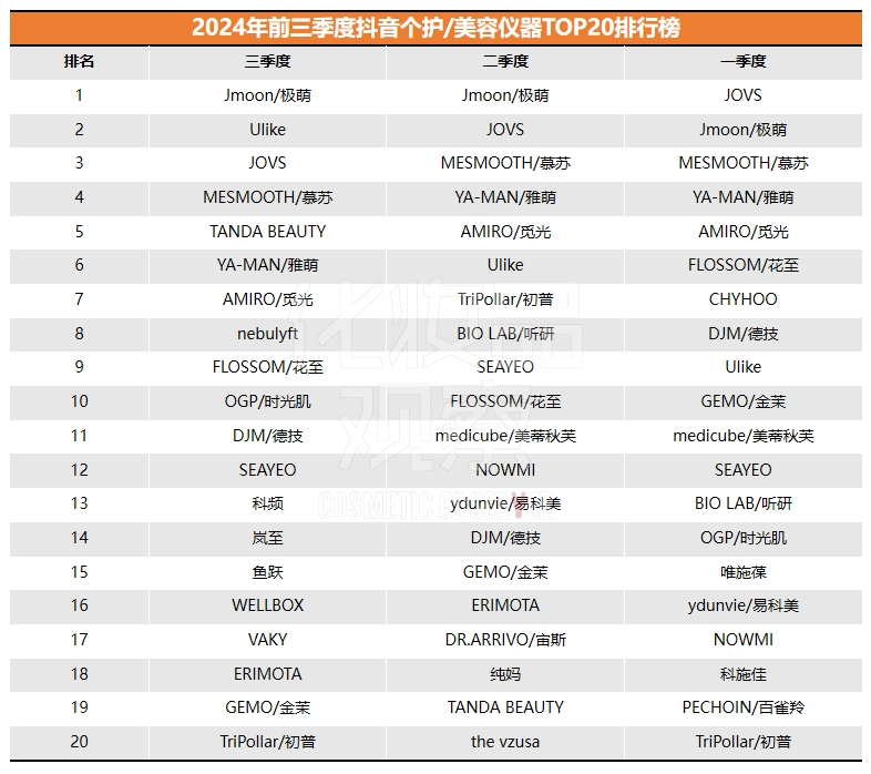 DCEXPORT连续3个季度跻身护肤TOP20。此前,《化妆品观察》在《比韩束赚得多,比温博士活得长,第三类品牌崛起》一文中分析过DCEXPORT,作为依托于创始人IP发展起来的品牌,其利润率以及品牌生命力不可小觑,今年在抖音的GMV有望突破10亿级。