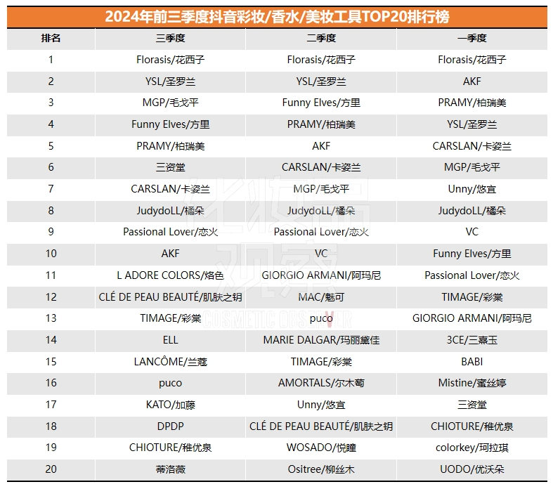 从今年三季度以及9月月度排名来看,抖音美妆仍在发生一些微妙变化。